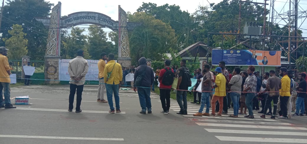 Mahasiswa juga melakukan pemalangan di gerbang utama UNIPA sampai ke masing-masing fakultas.