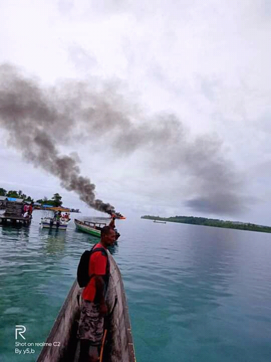 WAISAI – Speed boat yang ditumpangi rombongan KPU Raja Ampat terbakar di perairan kampung Deer, Distrik Kofiau, Kabupaten Raja Ampat, Selasa (1/12/2020).