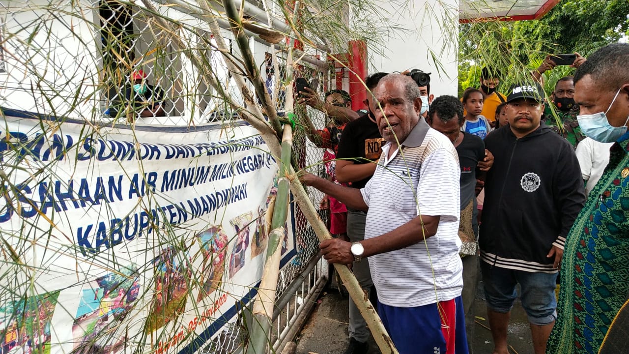 MANOKWARI—Warga RT 01/RW 06 Sanggeng akhirnya membuka palang di pintu utama Fuel Terminal Pertamina Manokwari, Sabtu (3/10/2020) sore.