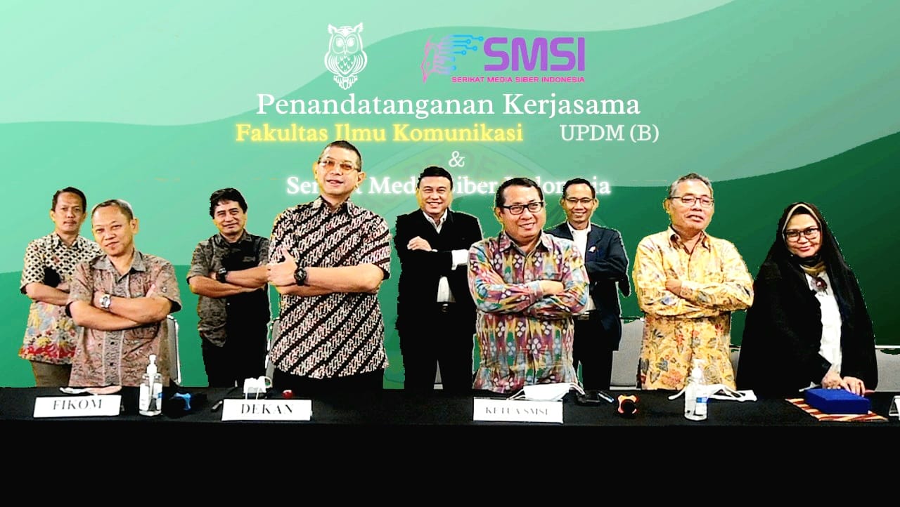 Penandatanganan kerjasama UKW SMSI-UPDM dilakukan oleh Ketua Umum SMSI Firdaus dan Dekan Fakultas Ilmu Komunikasi UPDM Dr Yoga Prasetya Santoso, MSi dengan disaksikan oleh Ketua Jurusan Komunikasi UPDM Dr Wahyudi Pratama, Ketua Program Studi Jurnalistik Nasrullah, MSi, dan Kapala Bagian Umum Habib Umar.