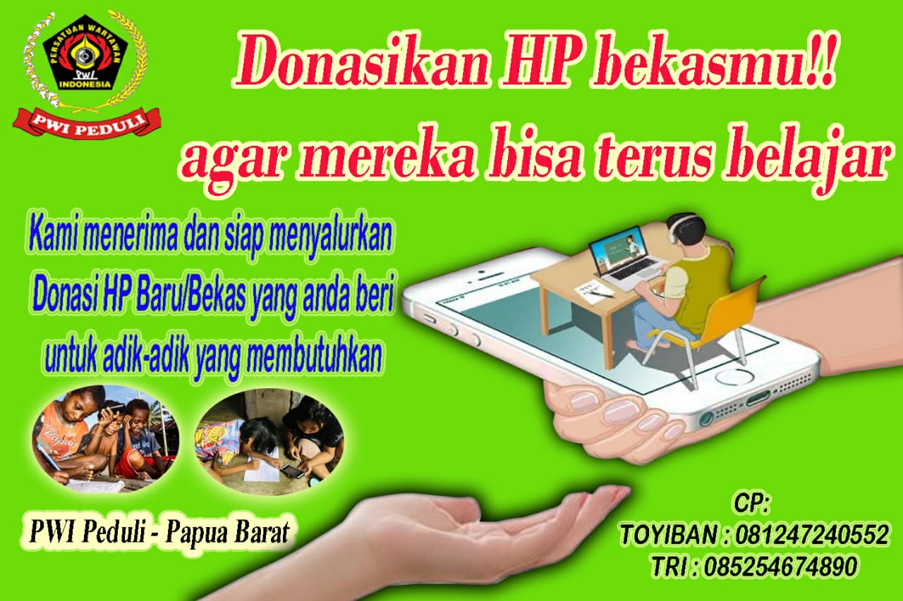 MANOKWARI-Persatuan Wartawan Indonesia (PWI) Provinsi Papua Barat melalui PWI Peduli melaksanakan aksi sosial menggalang smartphone bekas maupun baru untuk disalurkan kepada siswa/siswa yang mengalami kesulitan  dalam pembelajaran sistem daring.