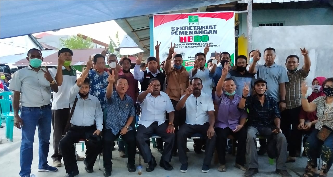 MANOKWARI-Calon Bupati Manokwari, Hermus Indou, Selasa (6/10/2020) tadi mengunjungi Sekretariat Pemenangan HEBO asal DPC Partai PKB Kabupaten Manokwari.