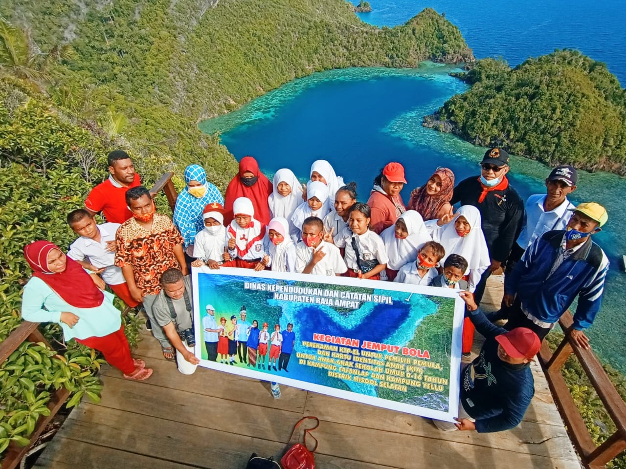 MISOOL,KLIKPAPUA.com – Belasan orang anak siswa Sekolah Dasar (SD) Negeri 17 mengikuti perekaman Kartu Identitas Anak (KIA) di “Puncak Love”, Misool, Raja Ampat, Kamis (5/11/2020).