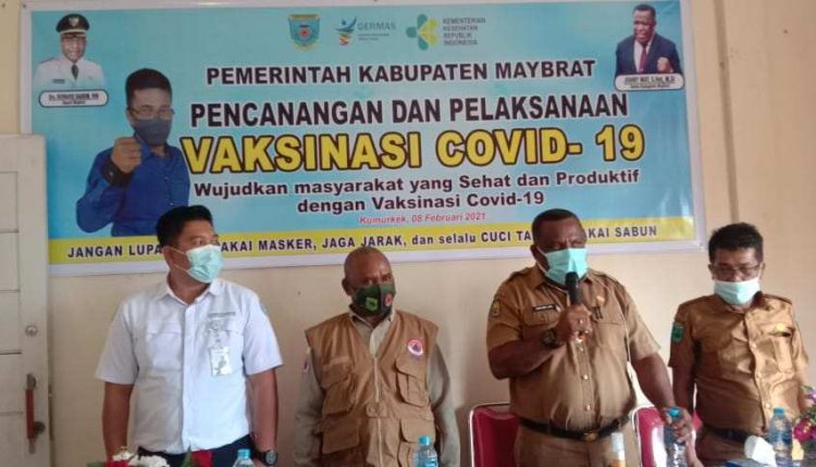 PAPUA BARAT – Pemerintah Kabupaten Maybrat Papua Barat melalui Dinas kesehatan melakukan pencanangan Vaksinasi Covid-19 dibuka oleh Bupati Maybrat, Bernard Sagrim melalui Sekretaris daerah (Sekda) Maybrat, Johni Way di aula kantor Dinas kesehatan, Senin (8/2/2021)