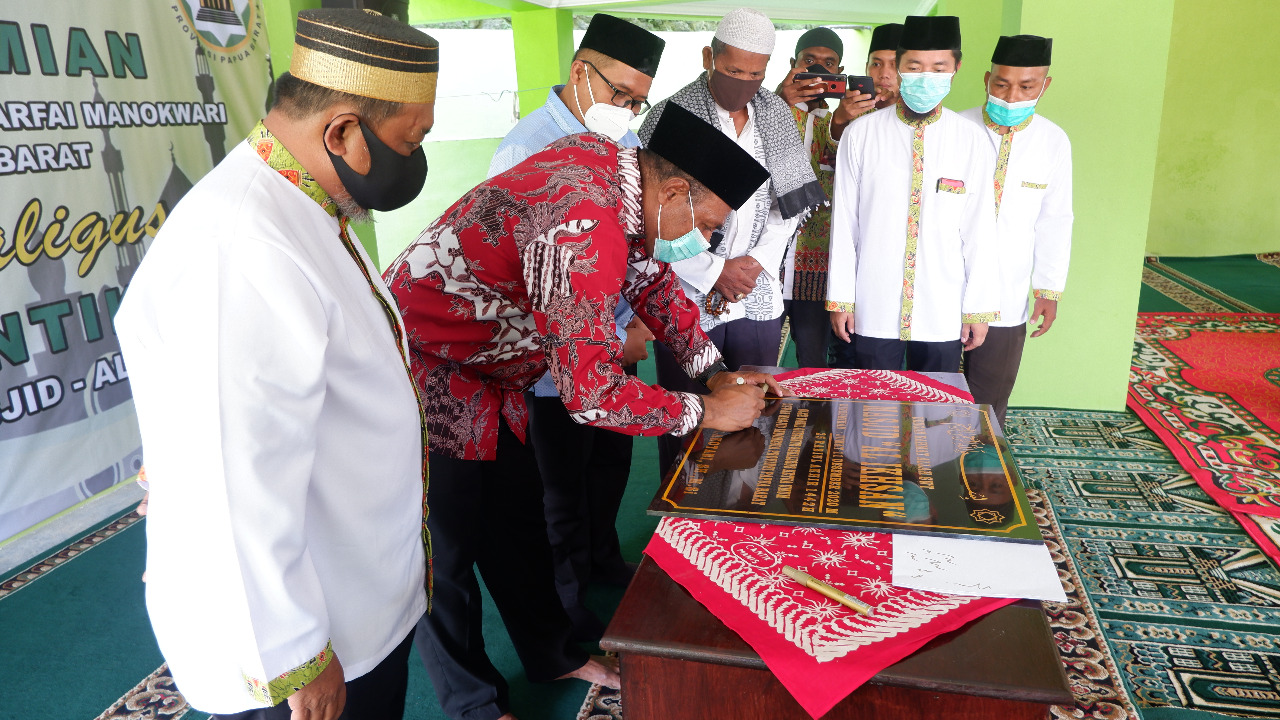 MANOKWARI– Ketua Dewan Masjid Indonesia (DMI) Papua Barat, Mohamad Lakotani meresmikan Masjid Al-Ikhsan Arfai di Distrik Manokwari Selatan, Kabupaten Manokwari, Jumat (11/12/202).