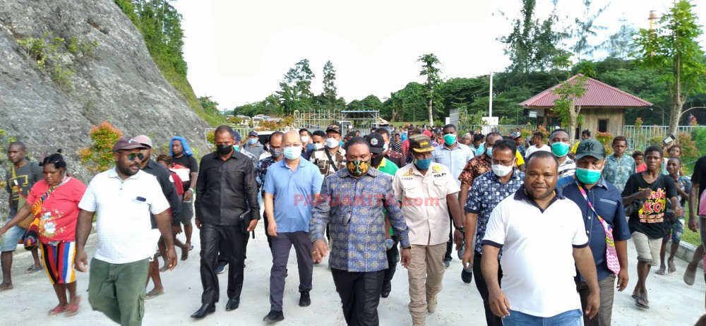 MANOKWARI—Bupati Manokwari Hermus Indou, turun langsung ke areal tambang batu kapur semen Maruni yang dikelola oleh PT SDIC, di Distrik Manokwari Selatan, untuk membuka blokade yang dipasang warga Kampung Hink, Sabtu (13/3/2021).