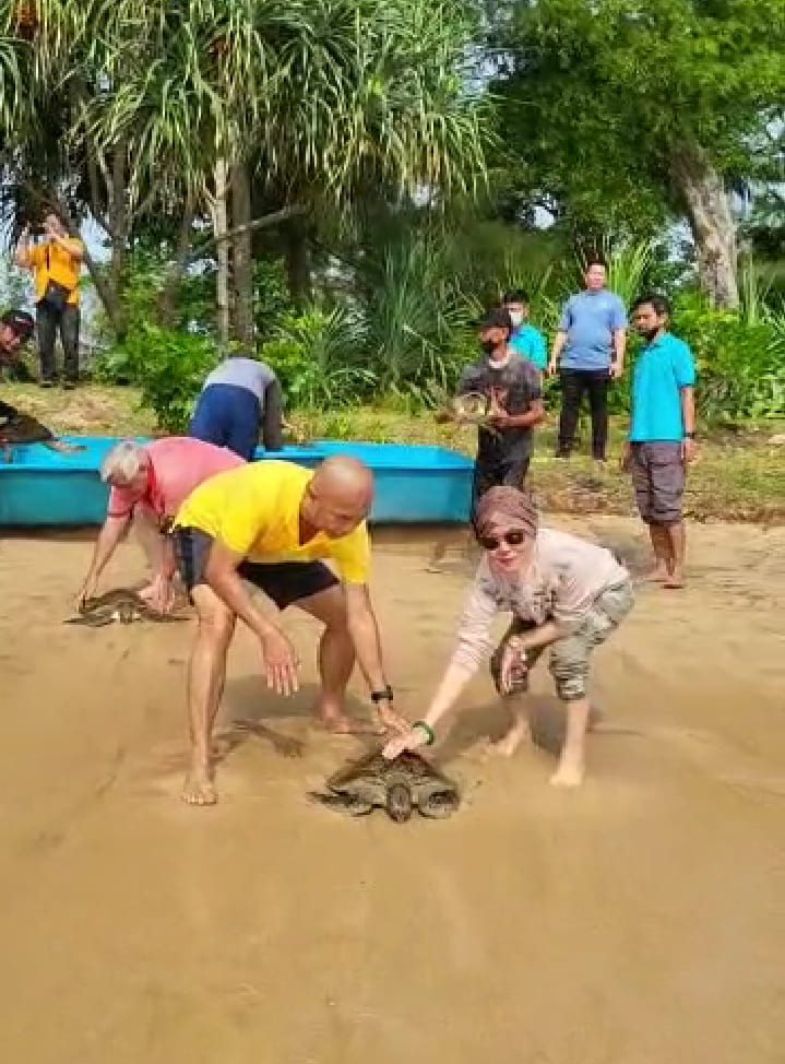 Beberapa waktu yang lalu, ia juga menyempatkan diri melepaskan ratusan anak penyu disebuah pantai di daerah Jakarta Utara.