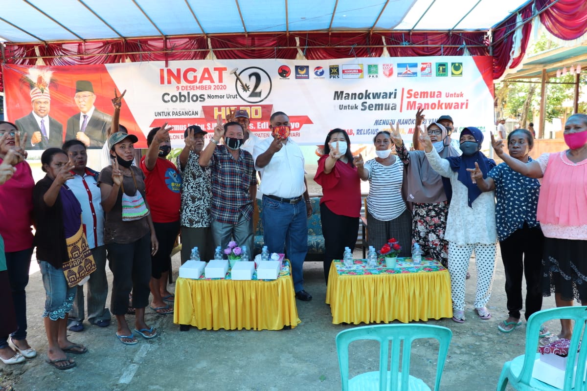 MANOKWARI– Warga Suapen Perkebunan menyatakan mendukung paslon Hermus Indou – Edi Budoyo di Pilkada Manokwari. Pernyataan dukungan tersebut diungkapkan Ketua RT/002 RW/13 Suapen Perkebunan, Piet Samori, Jumat (13/11/2020) saat tatap muka bersama Hermus Indou di Suapen Perkebunan.