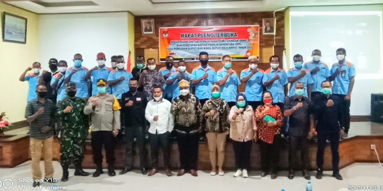 WAISAI –Komisi Pemilihan Umum (KPU) Raja Ampat, Papua Barat, menggelar rapat pleno terbuka tentang rekapitulasi daftar pemilih hasil pemutakhiran (DPHP) dan penetapan daftar pemilih sementara (DPS) pada pemilihan Bupati dan wakil Bupati Raja Ampat tahun 2020.