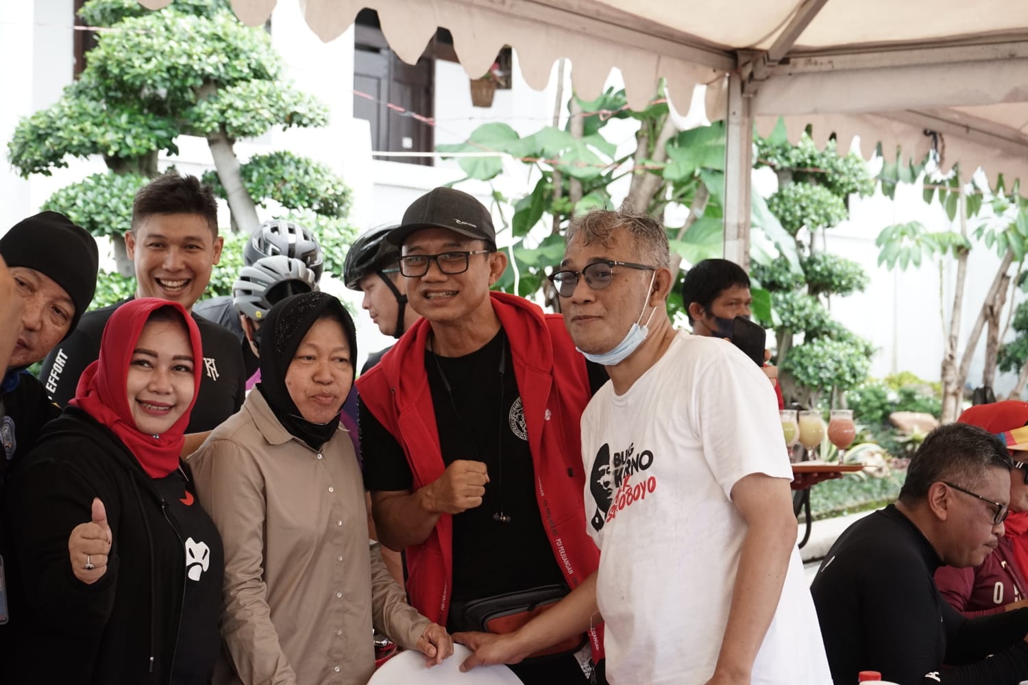 Kedatangannya disambut hangat oleh Menteri Sosial yang juga kader PDIP, Tri Rismaharini, Walikota Surabaya Eri Cahyadi, dan juga para kader politikus PDIP lainnya seperti Yoseph Aryo Adhi, Budiman Sudjatmiko, Pulung Agustanto. Tampak para politisi kader PDIP tersebut bersenda gurau hangat usai menyelesaikan rute bersepeda.