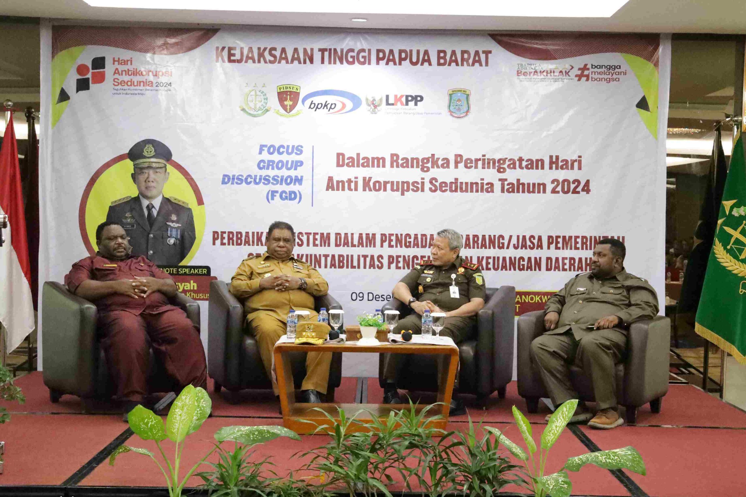 Penjabat Gubernur Papua Barat, Drs. Ali Baham Temongmere, MTP, menghadiri kegiatan fokus group discussion ( FGD ) perbaikan sistem pengadaan barang dan jasa, akuntabilitas pengelolaan keuangan daerah, yang digelar Kejaksaan Tinggi Papua Barat, pada salah satu hotel dalam kota Manokwari, senin ( 09/12/2024 ).