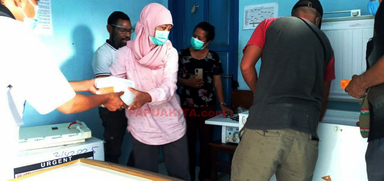 MANOKWARI, PAPUAKITA.com—Sebanyak 4.059 vaksin Covid-19 (dalam satuan vial) telah didistribusikan ke Kabupaten Manokwari, Minggu (17/1/2021). Vaksin covid ini langsung diserahkan ke Dinas Kesehatan, dan diterima langsung oleh Sekretaris Dinas, Yosina Orboy dan didampingi Kabid P2M, Marthen Rantetampang serta beberapa staf.