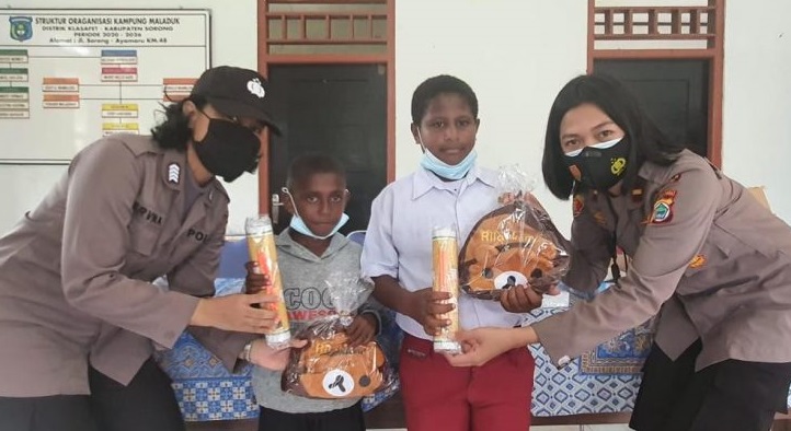 SORONG – Kepolisian Resor Sorong, Kapolsek Beraur Ipda Liska Oktavima Rudianto, S.Tr.K bersama Kanit Binmas IPDA La Hanisa, Bhabinkamtibmas BRIPKA Azhari, M dan Anggota unit Binmas Bripka Ervina C. Rinawaty Pasaribu melaksanakan kegiatan patroli Dialogis dan sambang di kampung Maladuk Distrik Klasafet Kabupaten Sorong. Dalam kegiatan tersebut Kapolsek Beraur bersama anggota menyempatkan untuk menemui anak anak yang sedang belajar pada masa pandemi Covid 19, Selasa (16/2/2021)