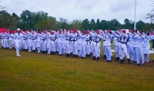 Usai pengibaran bendera, para tamu undangan dibuat terpukau oleh pasukan Paskibra yang menampilkan yel-yelnya yang begitu menabjubkan. Kemudian tari-tarian asal Papua juga ditampilkan di hadapan para tamu undangan. (ida)