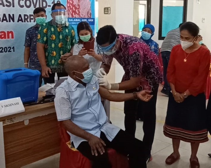 ARFAK – Plh bupati Pegunungan Arfak Ever Doansiba mencanangkan vaksinasi Corona Virus Disease (Covid-19) bertempat di Rumah Sakit Provinsi Papua Barat. Kamis (18/2/2021)