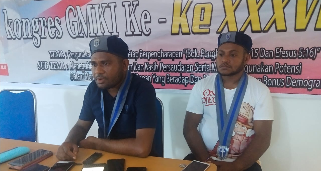 Ketua Cabang GMKI  Manokwari, Klemens Mandacan didampingi Kabid Aksi dan Pelayanan GMKI Imanuel Sermumes saat memberikan keterangan pers, mengatakan, pihaknya telah siap menyambut kongres yang akan dilaksanakan di Kabupaten Manokwari, Papua Barat.