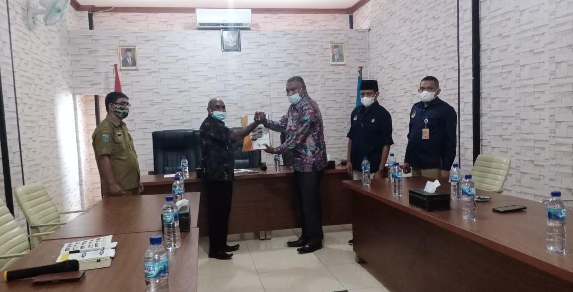 BINTUNI – Komisi Pemilihan Umum (KPU) Teluk Bintuni menyerahkan hasil rapat penetapan bupati dan wabup terpilih ke DPRD, Selasa (23/2/2021). Dokumen diserahkan langsung Ketua KPU Heri Arius E Salamahu.