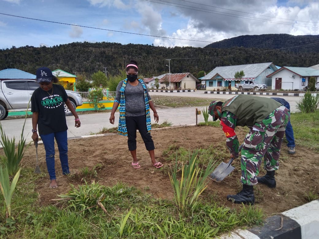 Koramil 1801-06/Pegaf Bantu Percantik Kabupaten Pegaf