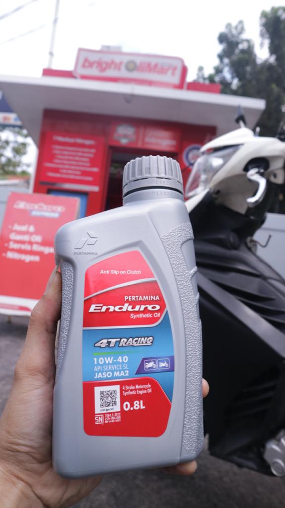 kepada seluruh masyarakat yang telah mempercayai Enduro 4T Racing sehingga mampu menjadi salah satu varian produk pelumas Pertamina yang sangat diminati. Kami berharap dengan kemasan baru ini dapat menjadi solusi bagi para pengendara motor yang ingin menggunakan pelumas berkualitas tinggi namun tetap ekonomi dan sesuai dengan kapasitas mesin motor 0.8 liter,”lanjut Ageng.