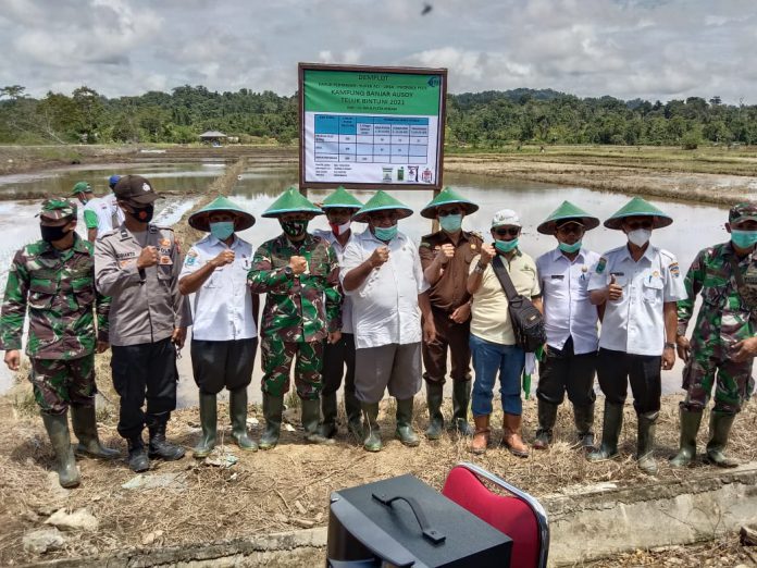 BINTUNI – Wakil Bupati Kabupaten Teluk Bintuni Matret Kokop, mencanangankan tanam serentak padi di persawahan Jalur 9, Kampung Banjar Ausoi (SP 4) Distrik Manimeri, Rabu (24/2/2021).