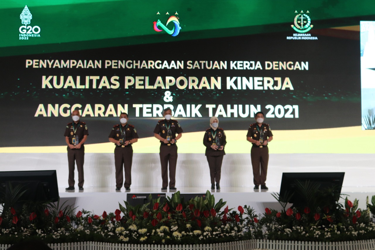 Penghargaan diberikan, karena Kejati DKI Jakarta dinilai sebagai Satuan Kerja dengan Kualitas Pelaporan Kinerja dan Anggaran Terbaik 2021.