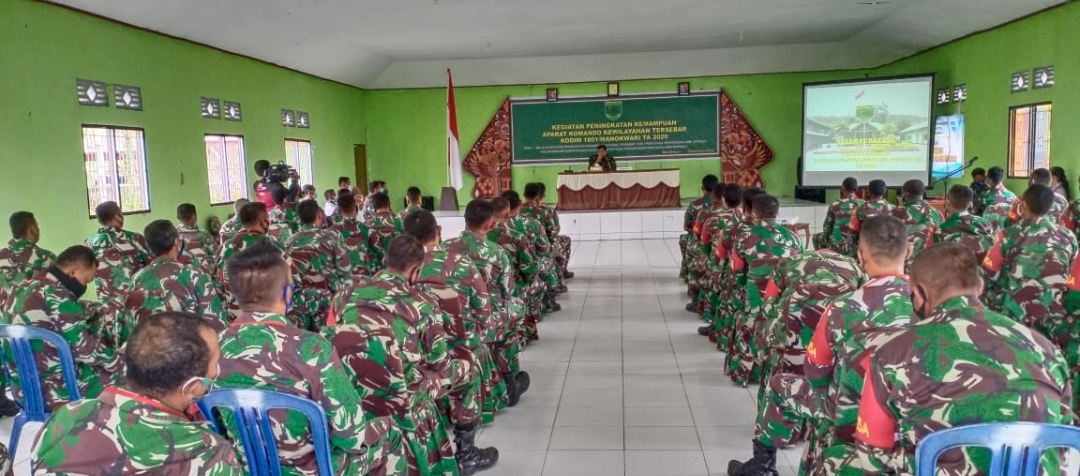 MANOKWARI–Dalam rangka meningkatkan kemampuan dan keterampilan prajurit jajaranya, Kodim 1801/ Manokwari menyelenggarakan Peningkatan Kemampuan Aparat Komando Kewilayahan Tersebar TA 2020, bertempat di gedung serbaguna Kampung Desay, Distrik Prafi,Rabu (25/11/2020).