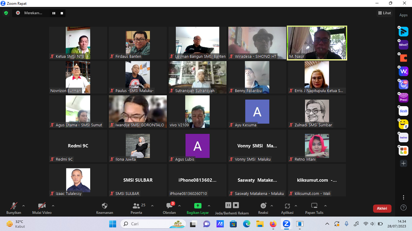 Para pengurus SMSI yang hadir dalam pleno tersebut antara antara lain Yono Hartono (Wakil Ketua Umum SMSI), Sekretaris Jenderal SMSI M Nasir dan wakilnya Wisnutomo, Ketua Departemen Pengembangan SMSI Pusat Ilona Juwita, serta Dr Retno Intani ZA, MSc (Ketua Bidang Pendidikan dan Pelatihan SMSI Pusat), Sihono HT (Yogyakarta), Erris J. Napitupulu, Agus Utama, Zulfikar Tanjung, Benny Pasaribu, dan Ayu Kesuma (Sumatera Utara), Paulus Joris (Maluku), Lesman Bangun (Banten), Abdus Syukur (Nusa Tenggara Barat), Zulnadi (Sumatera Barat), Novrizon Burman (Riau), Izaak Tulalessy, Saswati Matakena (Maluku), dan Iwandije (Gorontalo).