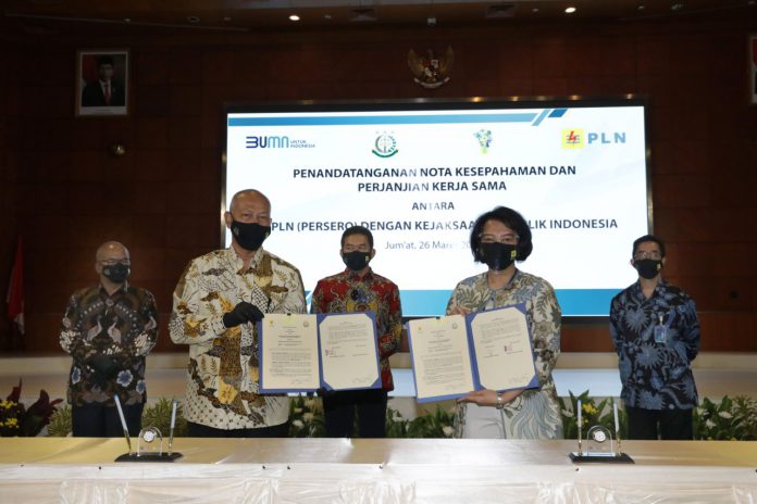 JAKARTA – PLN dan Kejaksaan Agung RepubIik Indonesia (RI) menandatangani nota kesepahaman dan perjanjian kerja sama bersama tentang koordinasi dalam pelaksanaan tugas dan fungsi. Hal ini merupakan wujud prinsip itikad baik, kehati-hatian dan kepatuhan PLN terhadap seluruh regulasi yang berlaku dan mendukung penerapan Good Corporate Governance (GCG).