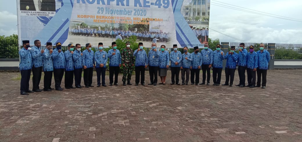 Linkpapuabarat.com– Pemerintah kabupaten Manokwari, Senin (30/11/2020) menggelar upacara dalam peringatan Hari Ulang Tahun (HUT) Korps Pegawai Republik Indonesia (KORPRI) yang ke 49 di halaman kantor bupati Manokwari. Bertindak sebagai pembina upacara pjs bupati Manokwari Robert.R.A. Rumbekwan.