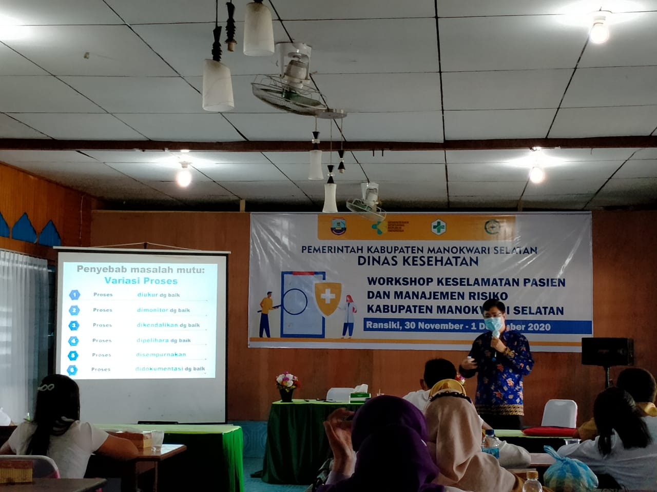 MANSEL – Dinas Kesehatan Kabupaten Manokwari Selatan menggelar pelatihan workshop Keselamatan Pasien dan Manajemen Resiko kepada Petugas Kesehatan dari empat puskesmas di Gedung Serbaguna Gereja Solafide, Ransiki, Senin (30/11/2020).