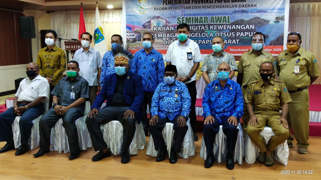 MANOKWARI– Sekda Papua Barat, Nataniel D. Mandacan membuka Seminar Awal Kajian Sinergitas Kewenangan Lembaga Pengelola Otsus Papua di Provinsi Papua, Senin (30/11/2020).