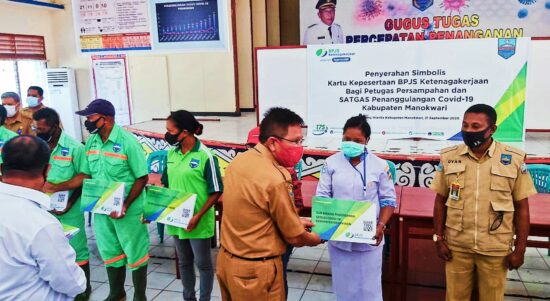 Petugas Persampahan dan Satgas Covid-19 Manokwari Terima Kartu BPJS Ketenagakerjaan