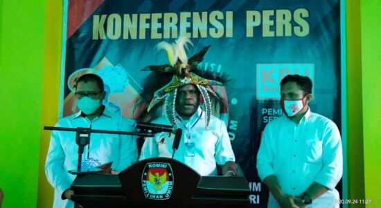 MANOKWARI– Pasangan calon Bupati dan Wakil Bupati Hermus Indou-Edi Budoyo saat pengundian/penetapan nomor urut Pilkada Manokwari, mendapat nomor urut 2. Calon Bupati