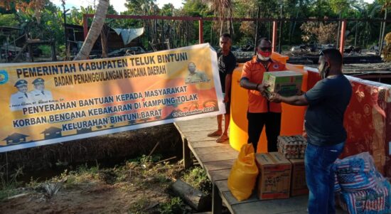 BINTUNI – Pemerintah Kabupaten Teluk Bintuni melalui Badan Penanggulangan Bencana Daerah (BPBD) dan Dinas Sosial menyalurkan bantuan awal kepada korban kebakaran di