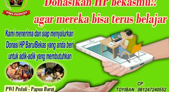MANOKWARI-Persatuan Wartawan Indonesia (PWI) Provinsi Papua Barat melalui PWI Peduli melaksanakan aksi sosial menggalang smartphone bekas maupun baru untuk disalurkan kepada siswa/siswa