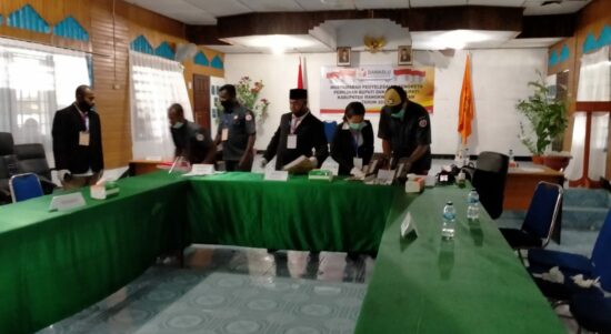 MANSEL– Musyawarah sengketa pemilihan tertutup antara bakal pasangan calon Seblum Mandacan-Imam Safi’i (Semanis) selaku pemohon dengan KPU Mansel selaku termohon di aula
