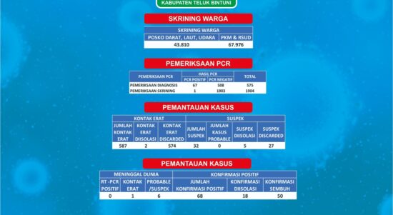 BINTUNI– Pada fase gelombang ke dua, Kabupaten Teluk Bintuni mencatat ada penambahan 11 kasus baru Covid-19 dalam waktu sehari. Sesuai rilis Juru