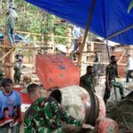 Prajurit Yonif 763/SBA Brigif 26/GP Bantu Pengecoran Tiang Gedung Gereja GBI
