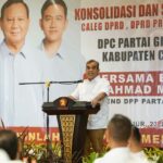 Sekjen Partai Gerindra Ahmad Muzani menghadiri konsolidasi DPC Gerindra Kabupaten Cianjur pada Selasa (23/1). Dalam sambutannya, Muzani meminta kader untuk berjuang memenangkan